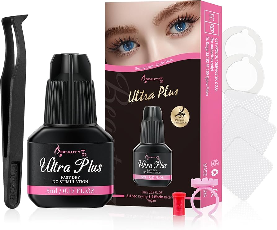 Beauty7 Colla per Extension Ciglia con Pinzetta, Cluster Lash Ultra Plus Colla per Extension Ciglia…
